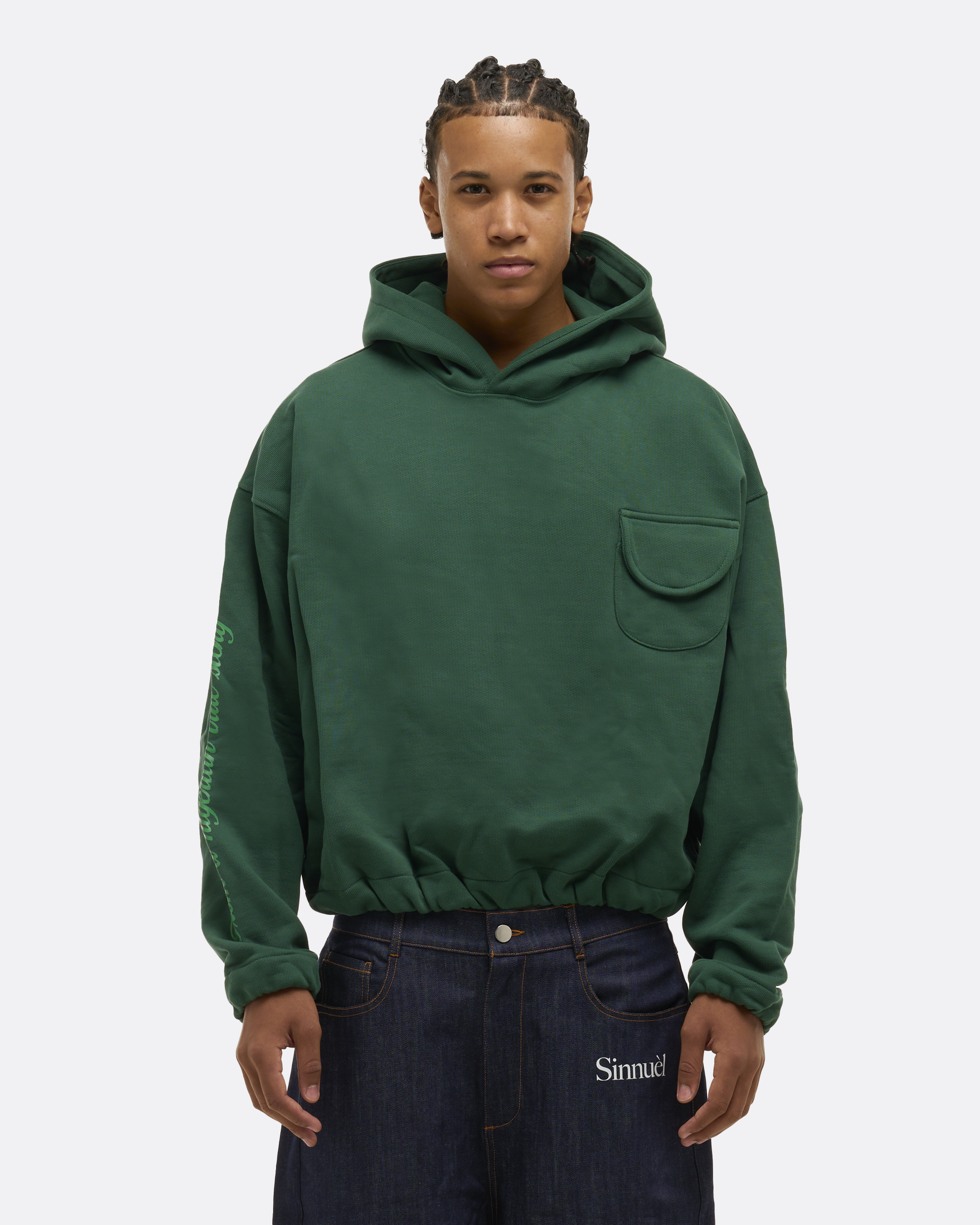 Cargo Pocket Crop Fit Hoodie (Green)