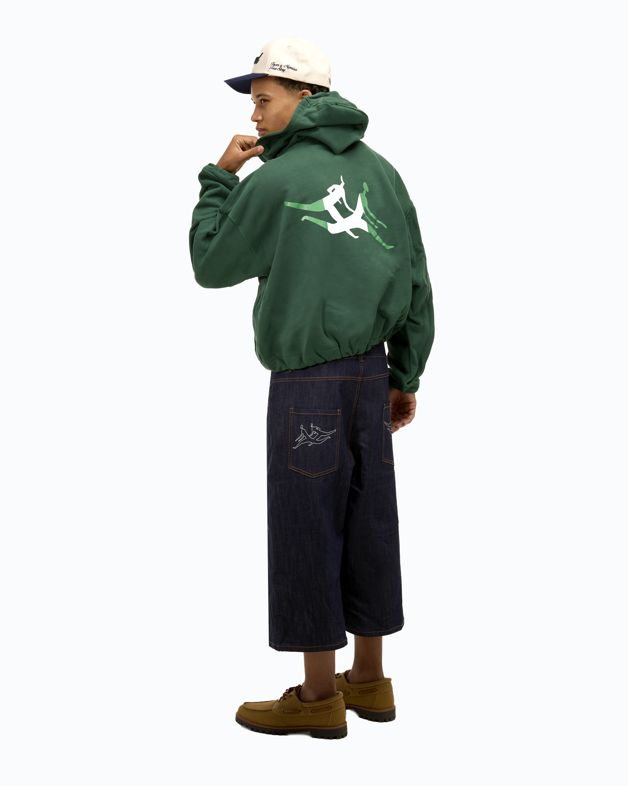 Cargo Pocket Crop Fit Hoodie - Green